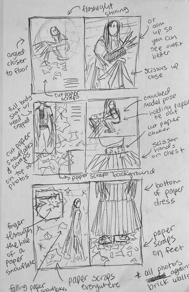 Experimenting with different layouts and poses helped me explore how to best tell the story. After many sketches, ending with a full spread of the model in her “full element” would be the most effective way to show her completely free and confident. Full spreads feel more expansive and empowering, giving the ending the impact it needed.​